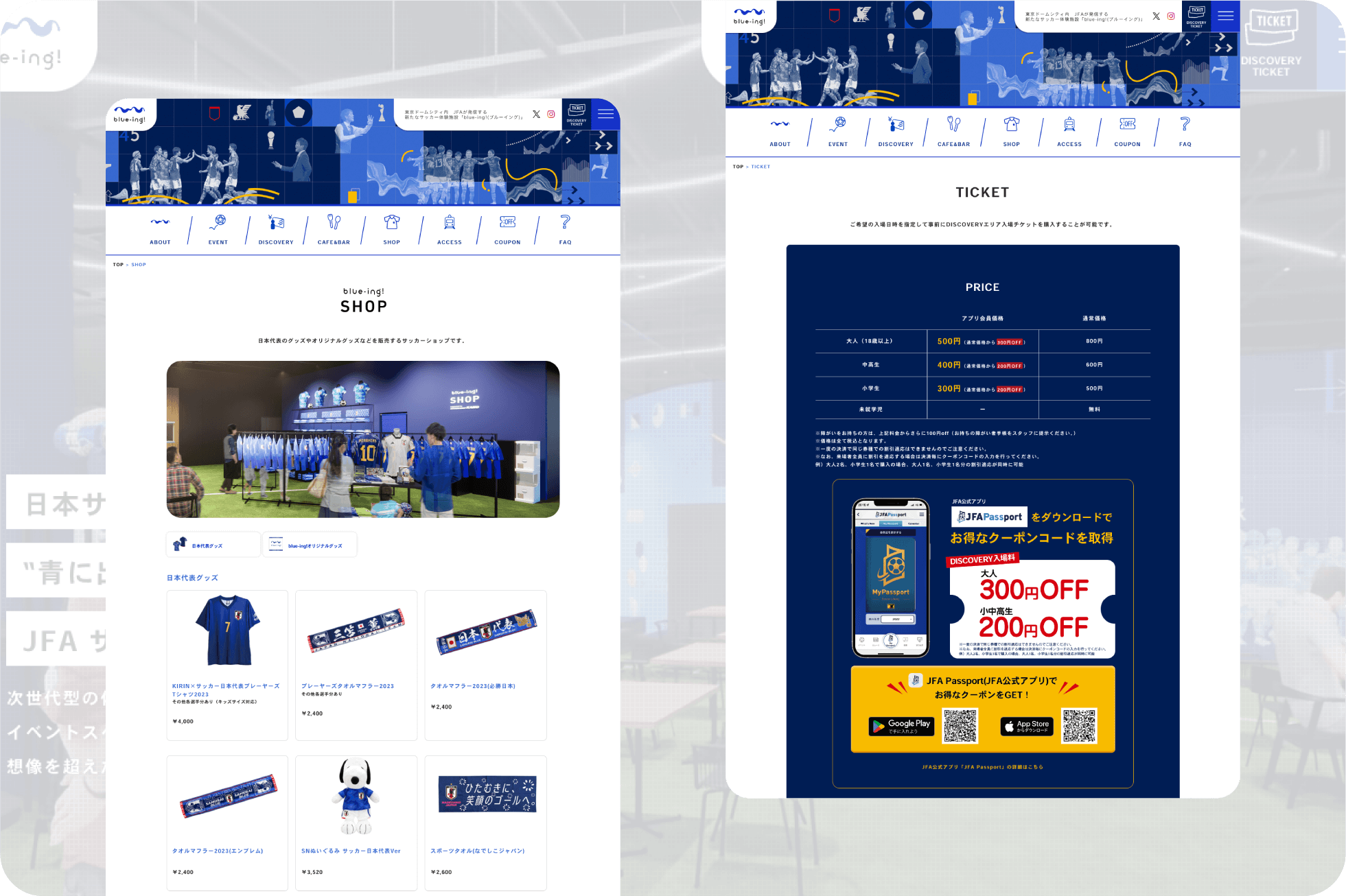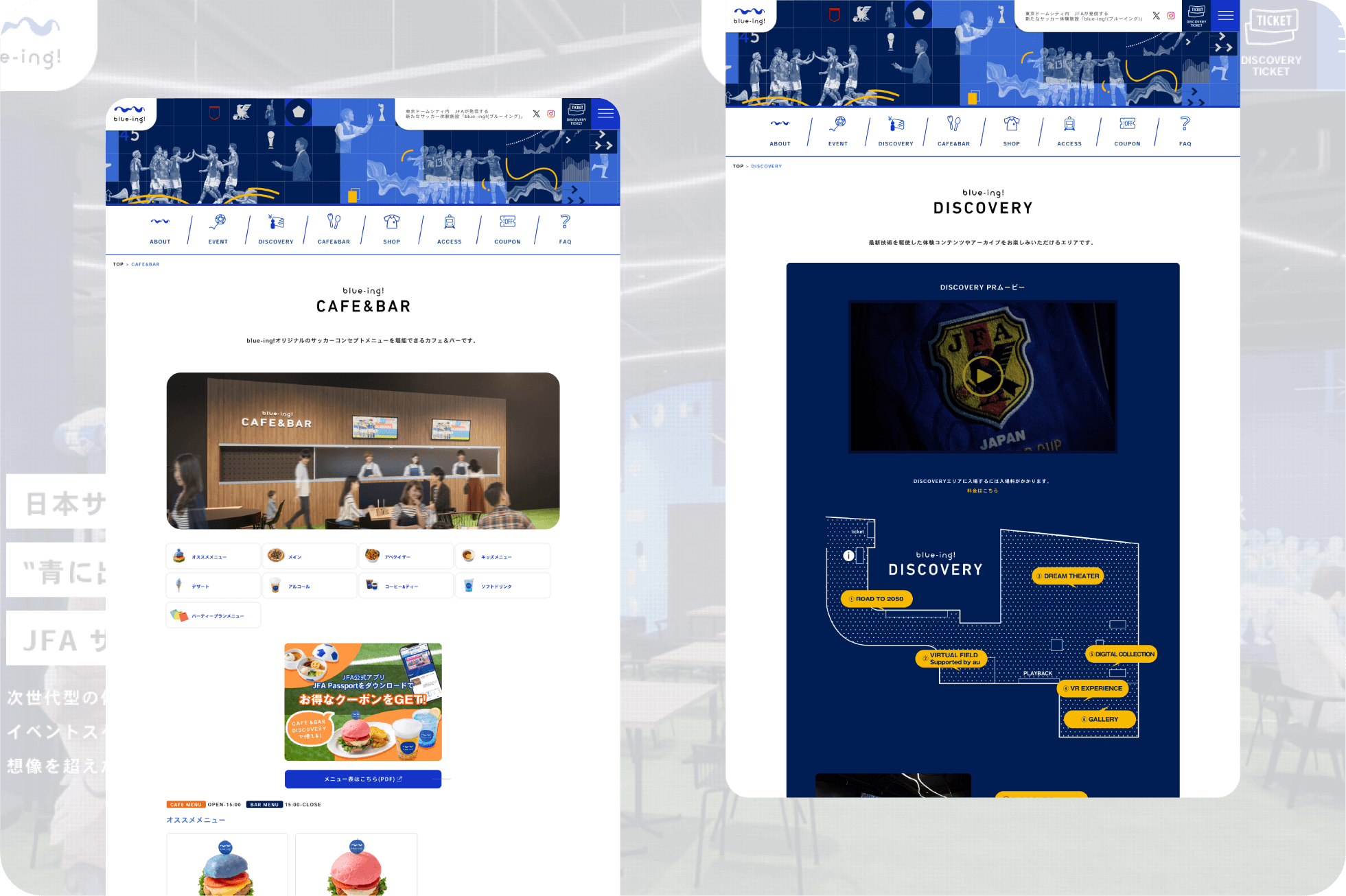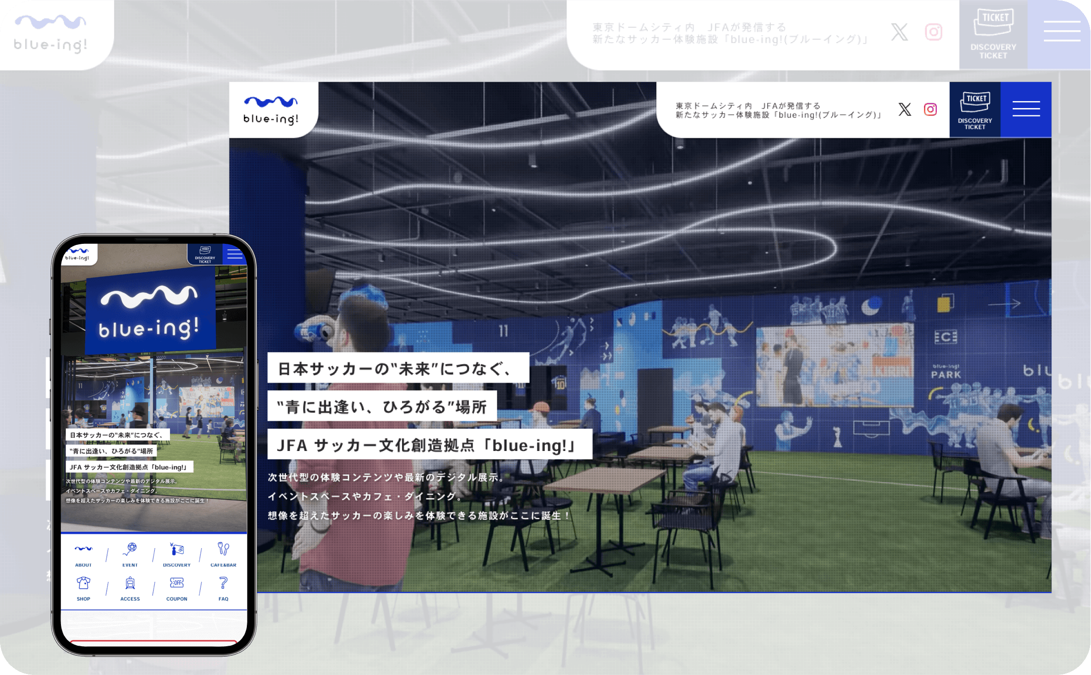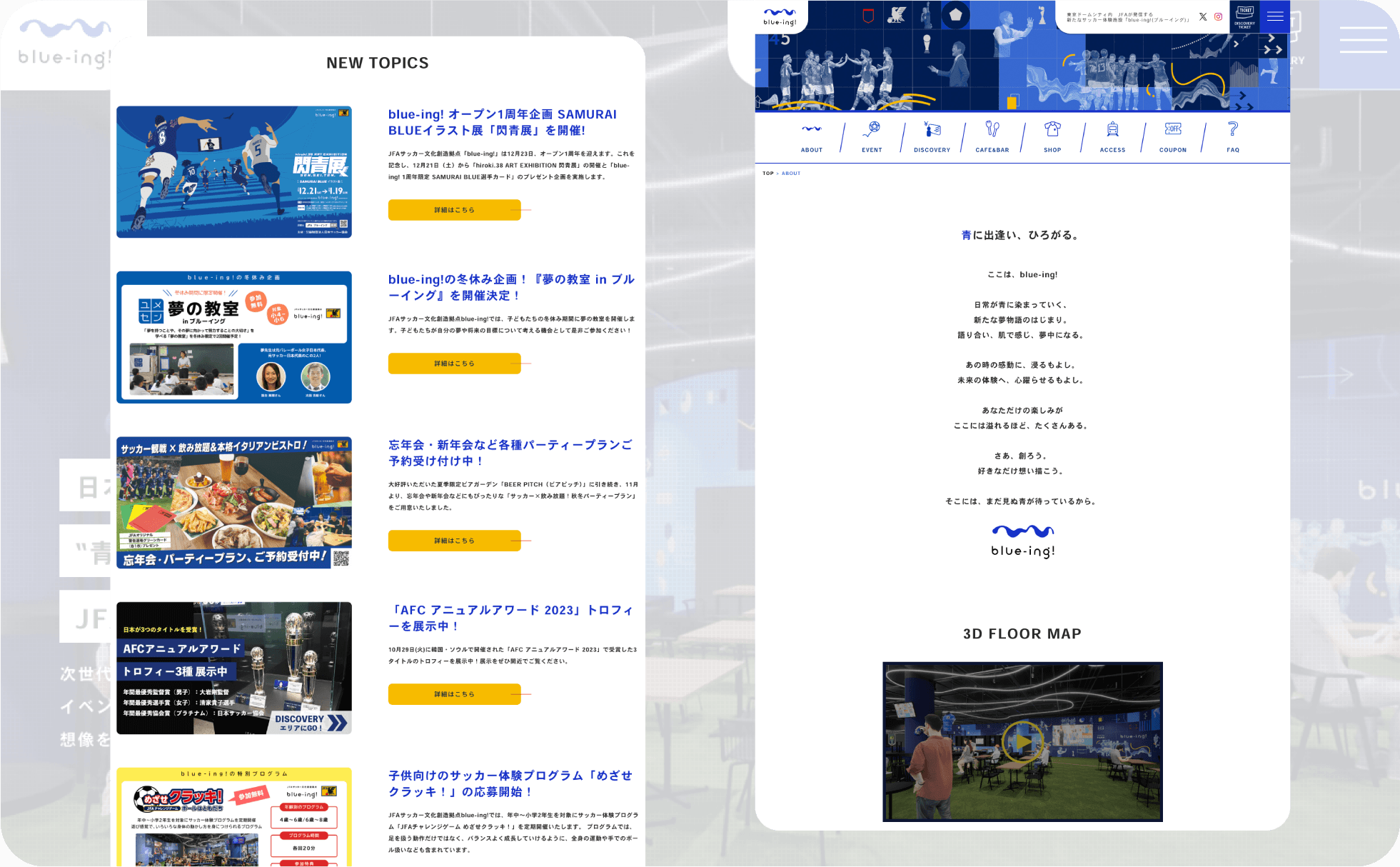 公益財団法人日本サッカー協会(JFA)が運営する、サッカー文化を体験できる複合施設「blue-ing!」の公式サイトの運営・作成を手掛けました。