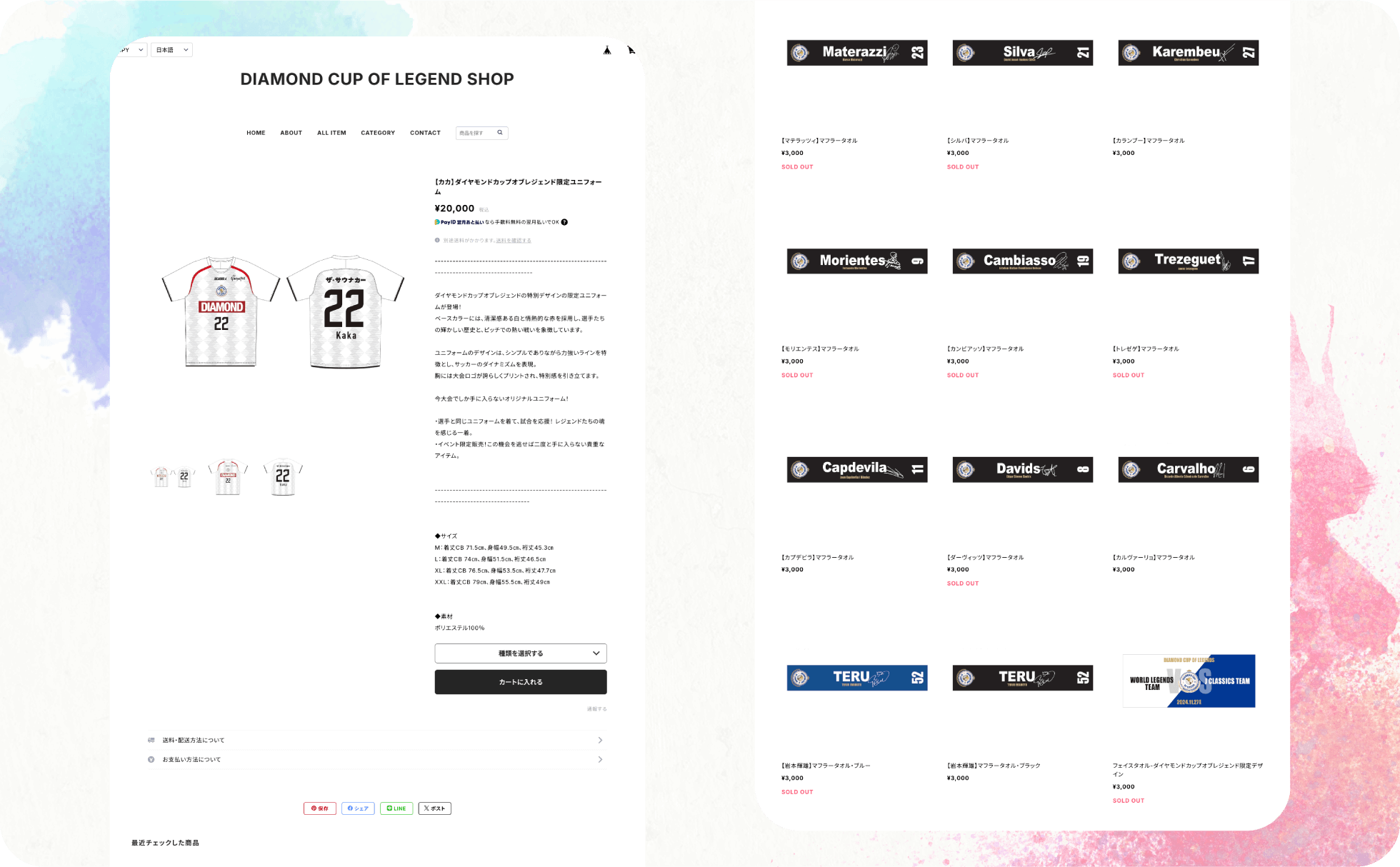 当大会オリジナルのグッズも販売!ワールドレジェンズのネーム、背番号入りユニフォームや